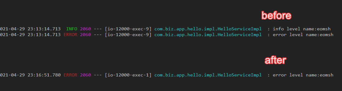 - 서비스를 운영중에 프로세스 재 시작없이 로그 레벨을 변경해야할 경우가 있을 수 있습니다.(Dynamically modify the log level)