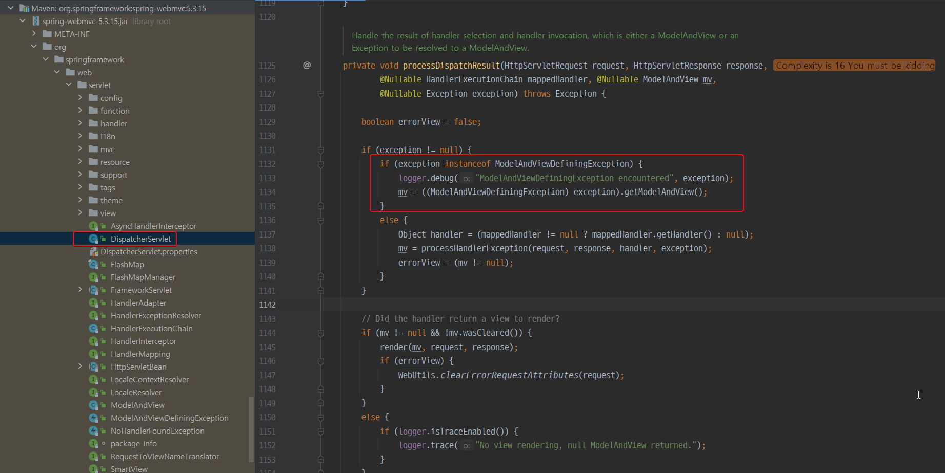 참고로 DispatcherServlet.java에서 ModelAndViewDefiningException 처리가 되어있다.