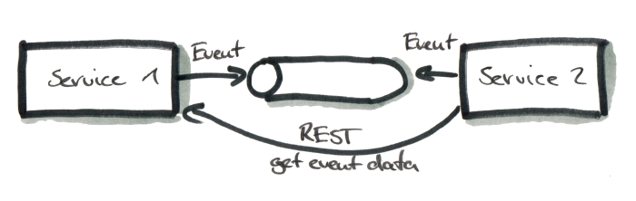 - 데이터 발생서비스는 메시지큐(kafka, aws sqs 등)에 변경이 발생한 데이터의 id(예. 주문ID와 같은 RDB에서의 PK)만 메시지큐에 발행(pub)