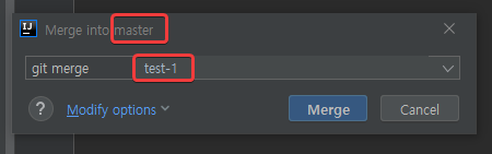 - test-1 브랜치를 master로 merge하기